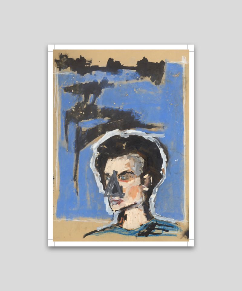 This anonymous portrait showcases Johnny Depp's playful approach to imperfection. When he couldn't get the shape of the nose right, he filled it in with a grey triangle, boldly incorporating the unexpected. Based on an undated artwork of Johnny Depp.