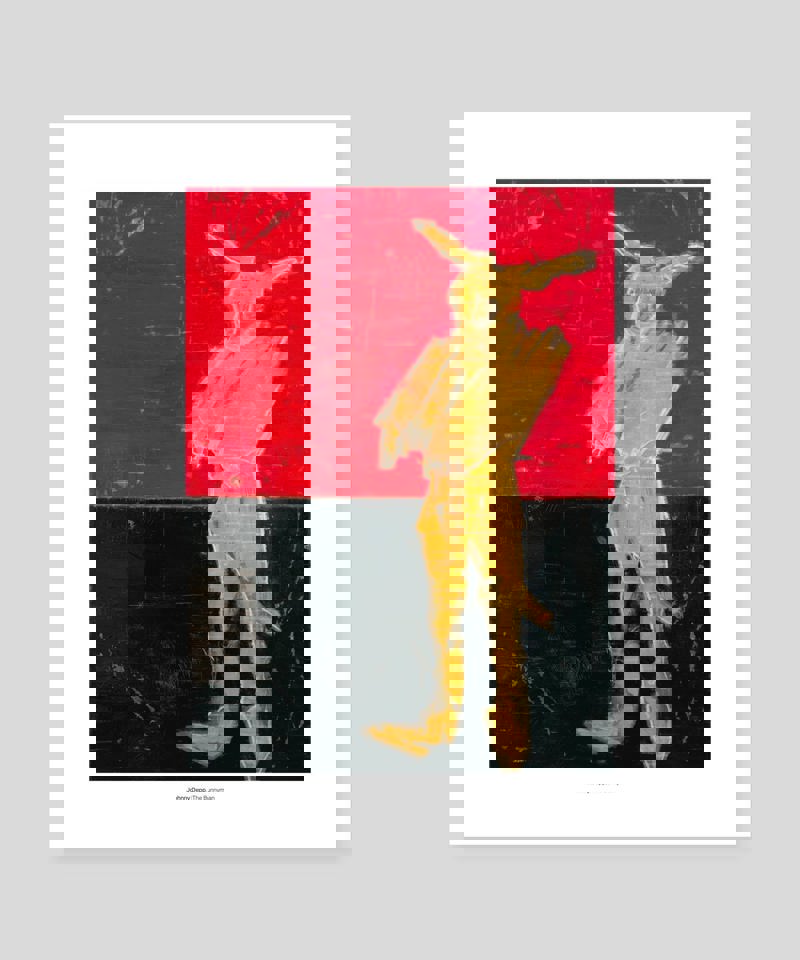 This is the first miniature print of Bunnyman art that Jonny has produced, a two-metre canvas piece currently on display in the exhibition, which served as the inspiration for the print "The Bunnyman Genesis" released last December.